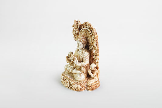 Ivory Buddha sitting on throne – India, 19th century