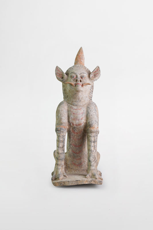 Pair of painted grey terracotta figures of earth spirits – China, Han dynasty (200 BC – 200)