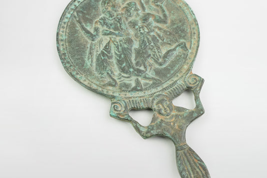 Handspiegel aus Bronze mit der Abbildung eines tanzenden Paares – Griechenland, 5. Jahrhundert v. Chr.