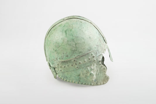 Eiserner Gladiatorenhelm mit bronzenem Löwenkopf – Antikes Rom, 3.–4. Jahrhundert