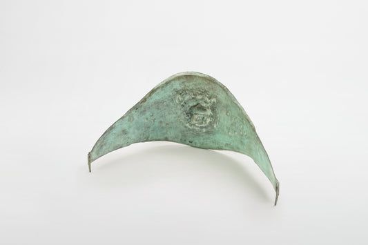 Unterer Schienbeinschutz aus Bronze mit geprägtem Löwenkopf – Rom, 1./2. Jahrhundert