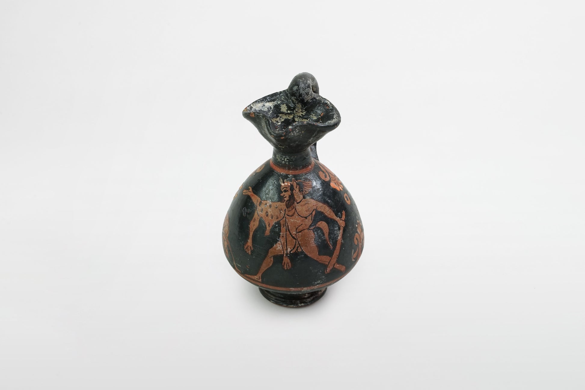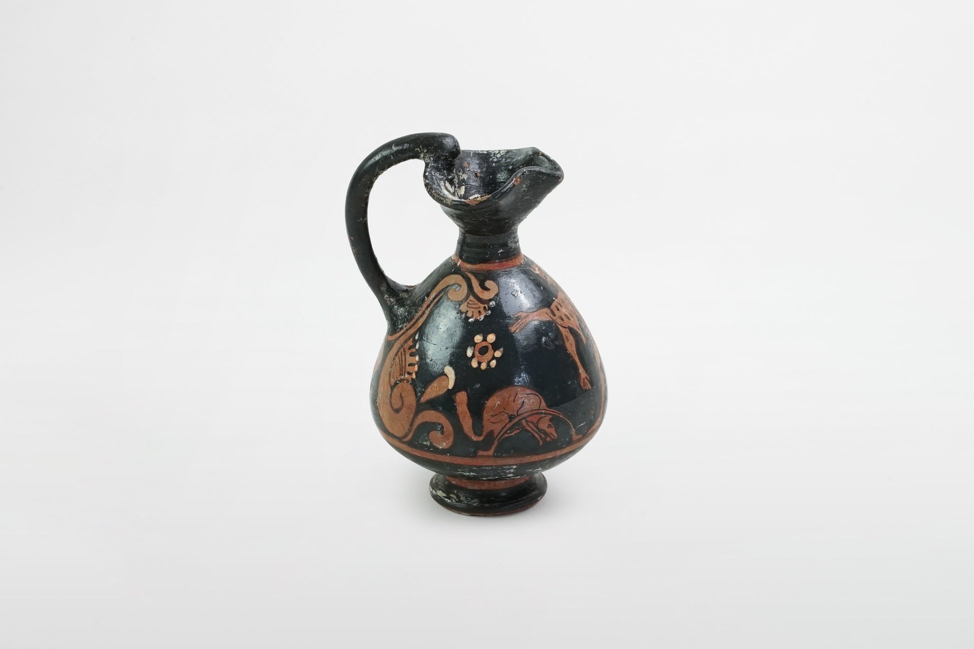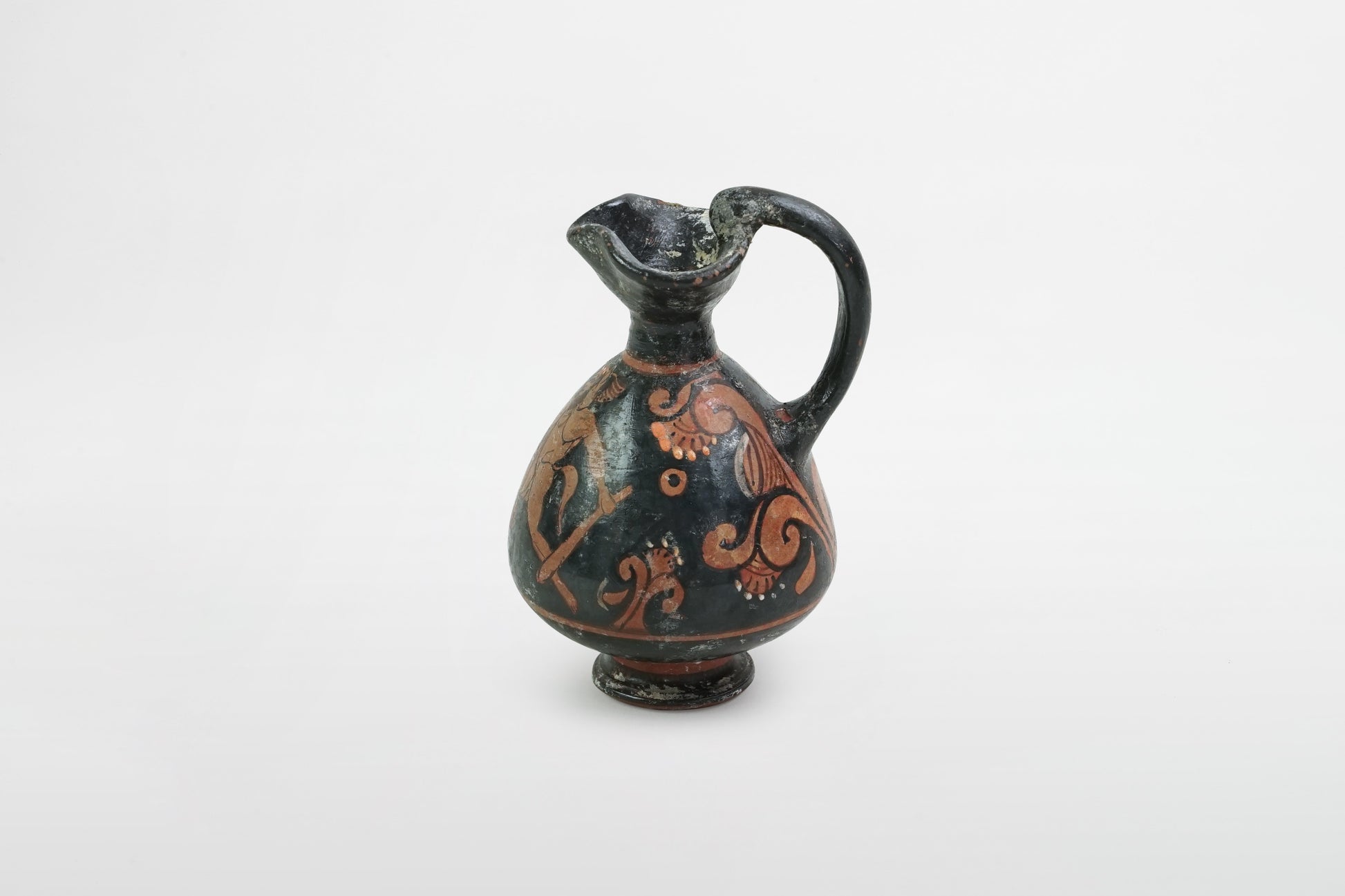Attische, schwarz glasierte und bemalte Miniatur-Oinochoe – Griechenland, 4. Jahrhundert v. Chr.