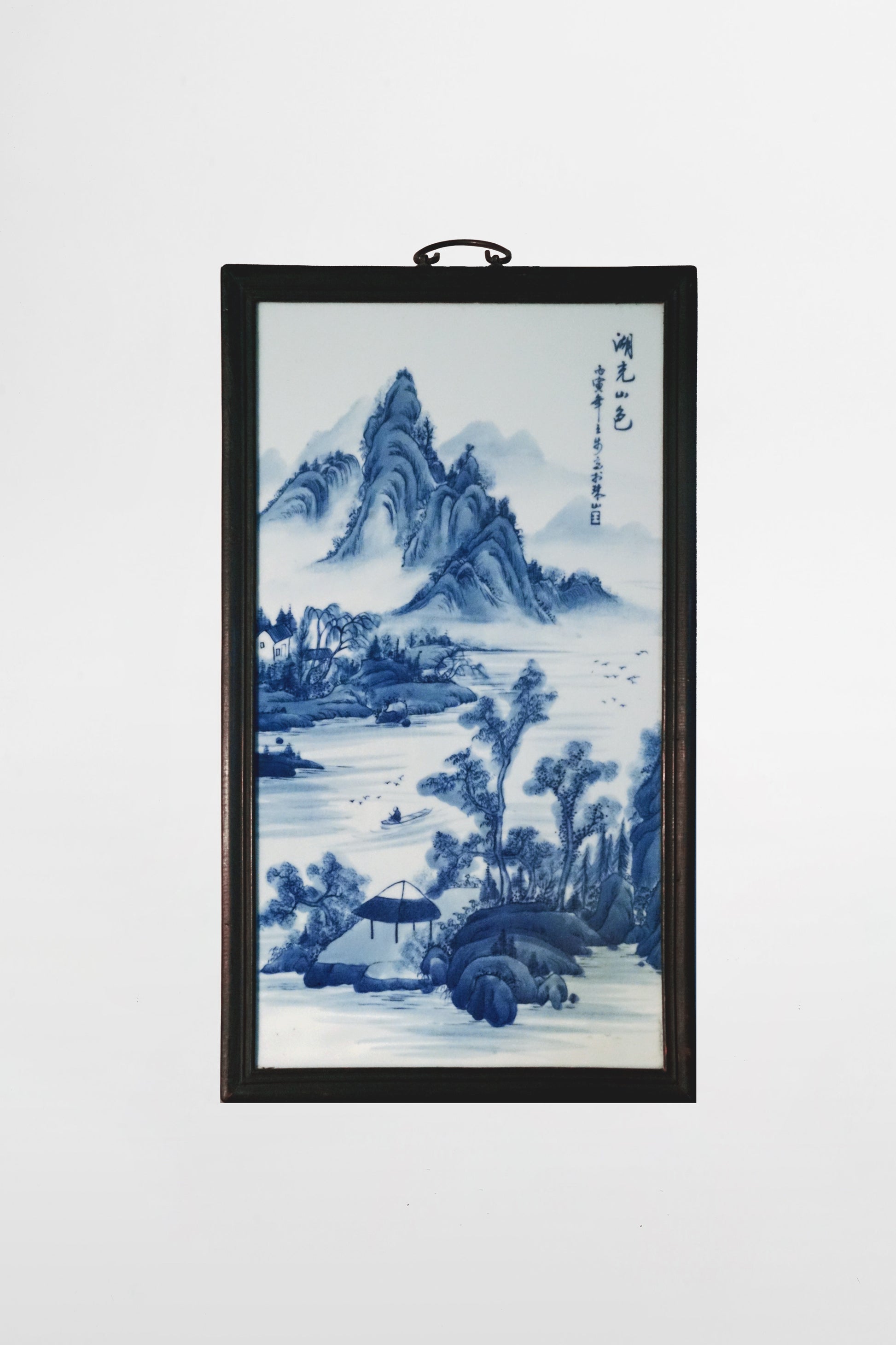Unterglasurblau auf Porzellan, gerahmt