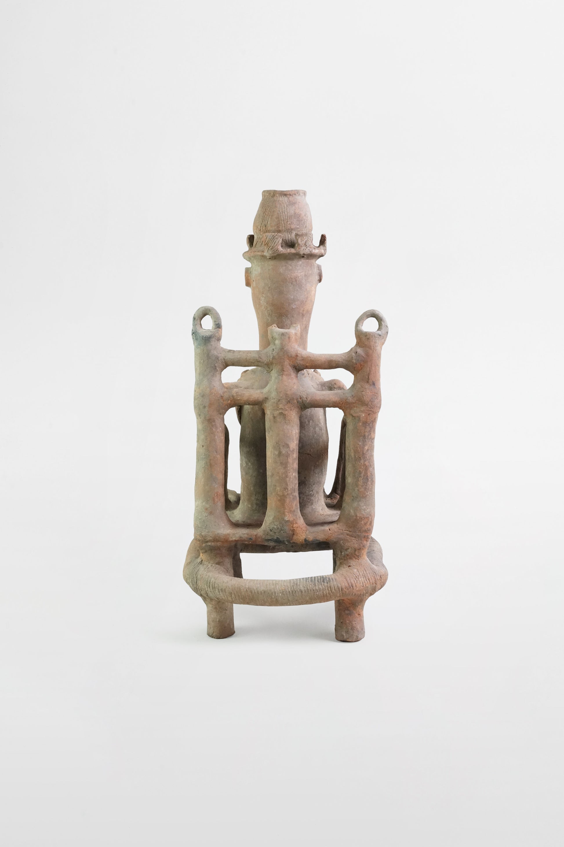Würdevolle Terrakottafigur auf einem Thron, Chamba-Stamm – Nigeria, 18. Jahrhundert