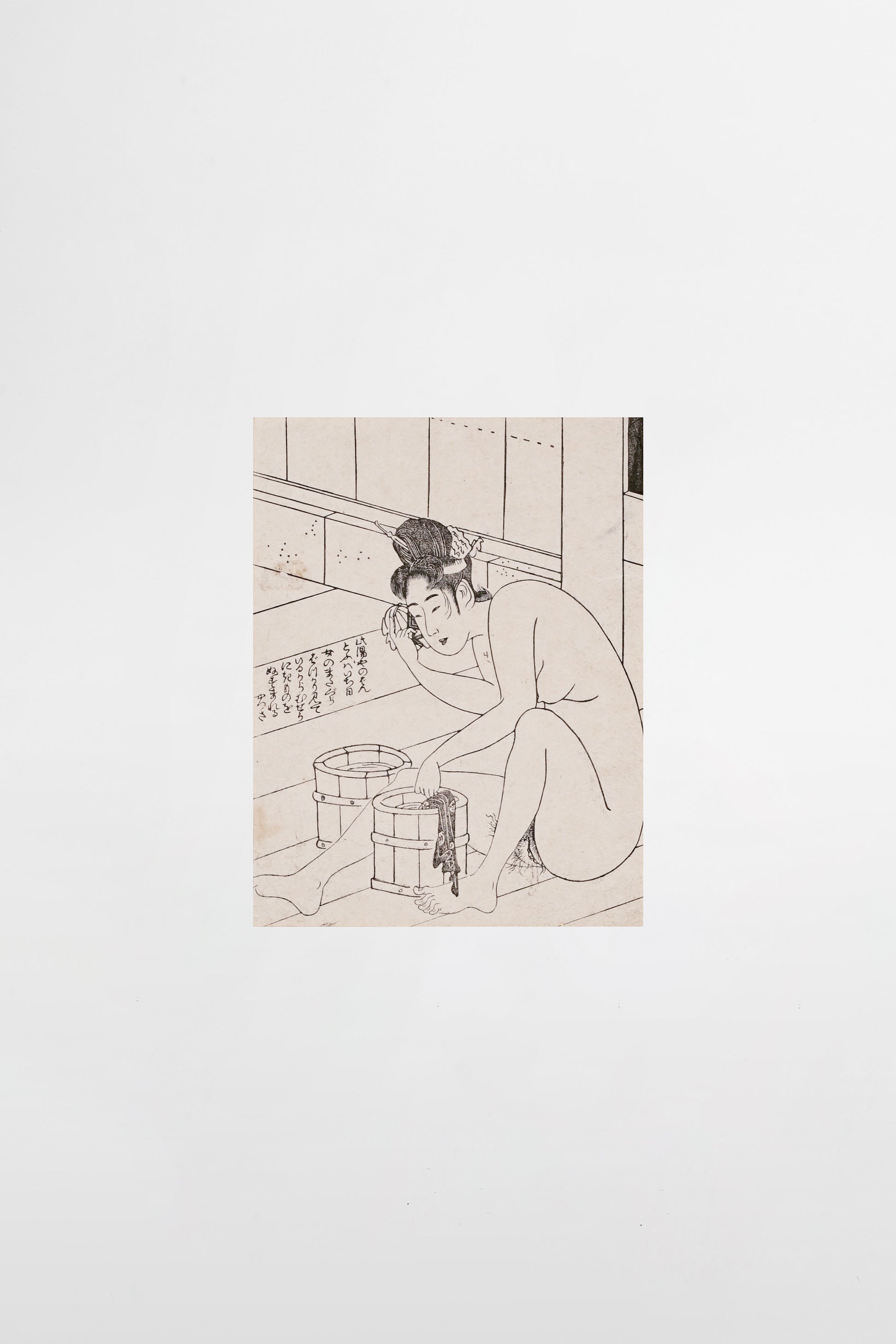 Japanischer Shunga: Begegnung mit einer badenden Frau – Japan, frühes 19. Jahrhundert