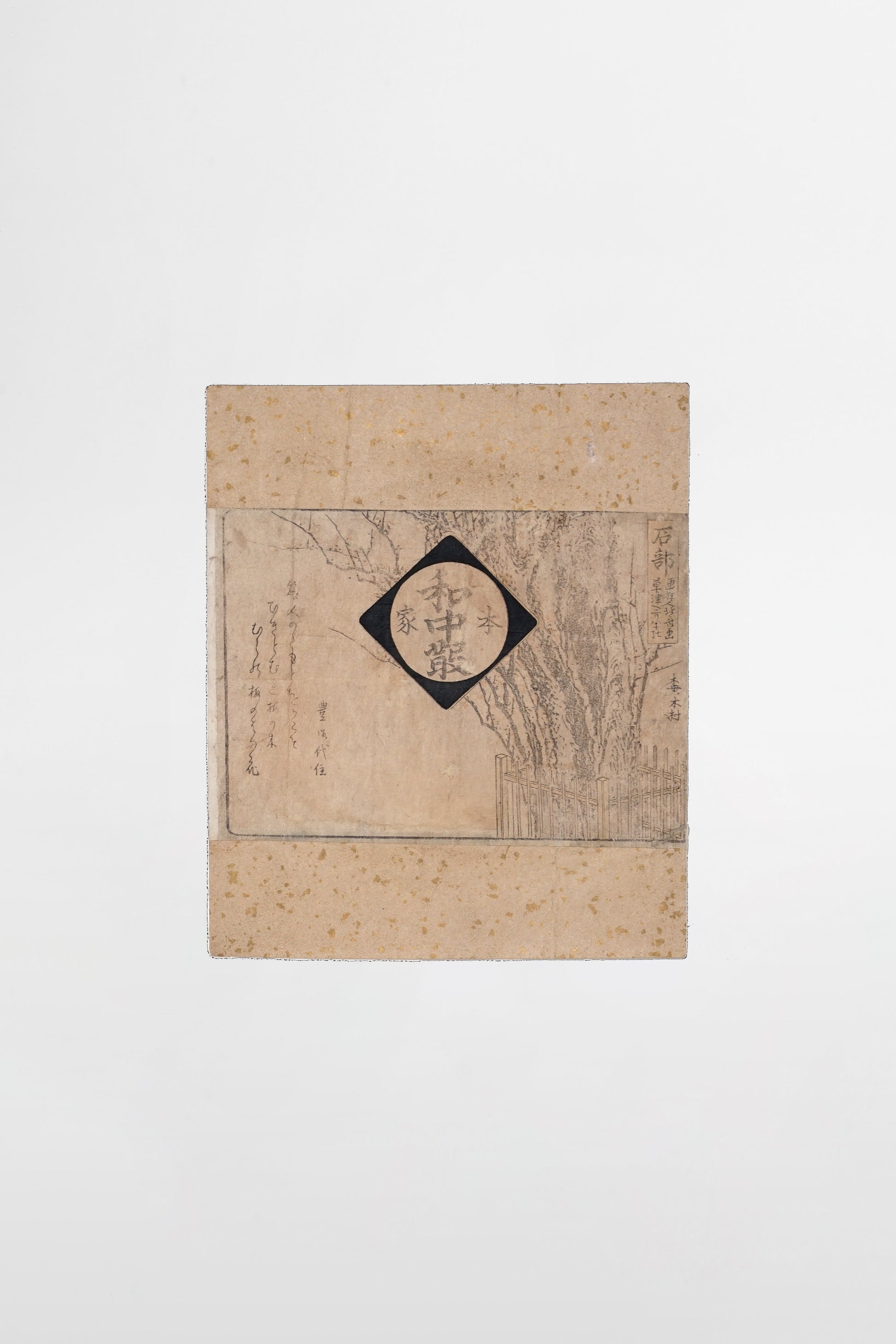 Werbe-Surimono für „Wachūsan Honke“ mit Pflaumenmotiv – Japan, Mitte des 19. Jahrhunderts