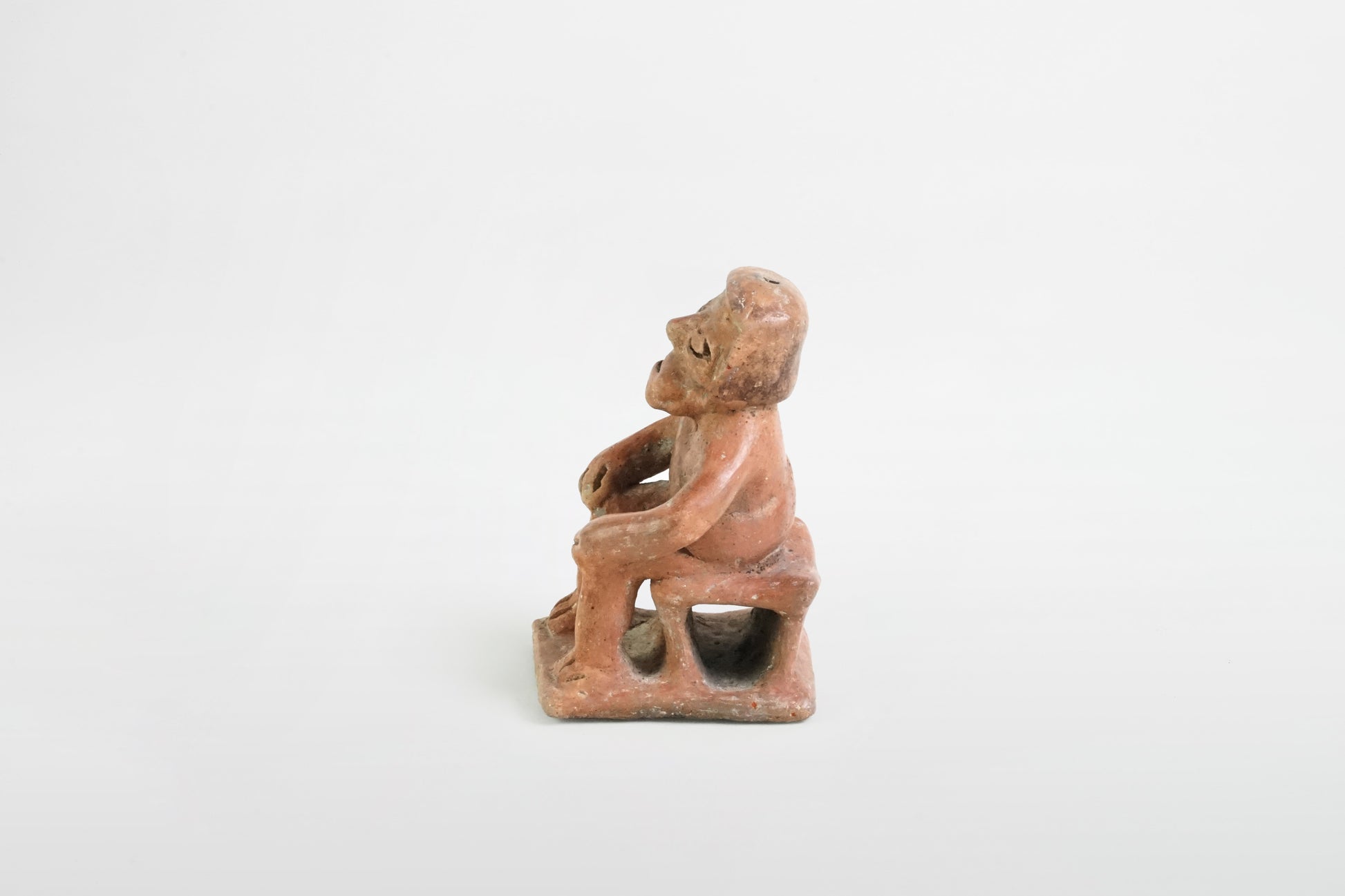Sitzende Keramikfigur auf einer Bank, Nayarit-Kultur – Mexiko, 4. Jahrhundert v. Chr. – 4. Jahrhundert