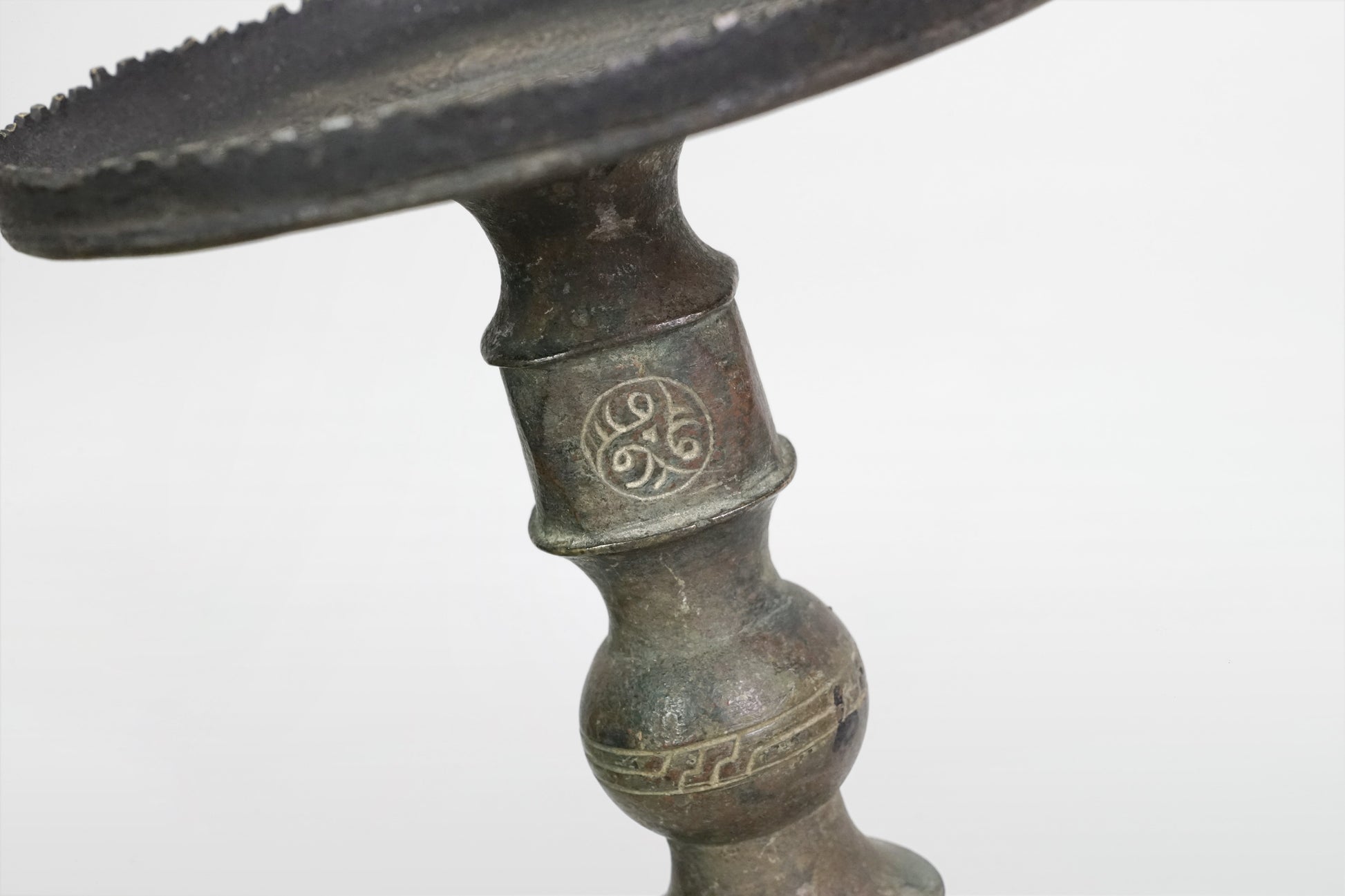 Seldschukischer Kerzenhalter aus patinierter Bronze, Nishapur – Persien, 12. Jahrhundert