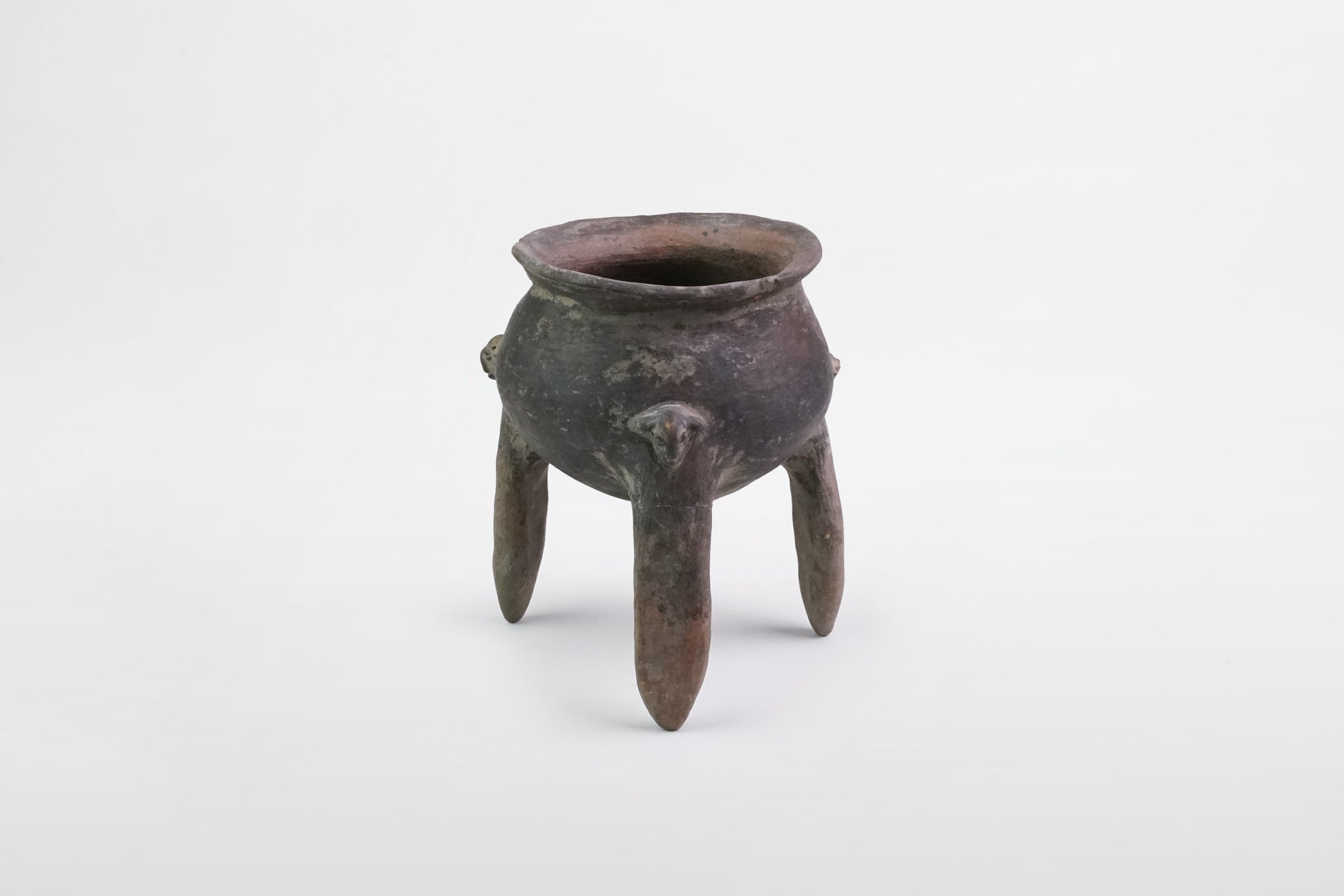 Dreibeingefäß mit Tierapplikationen, wahrscheinlich Colima- oder Jalisco-Kultur – Westmexiko, 4. Jahrhundert v. Chr. – 4. Jahrhundert